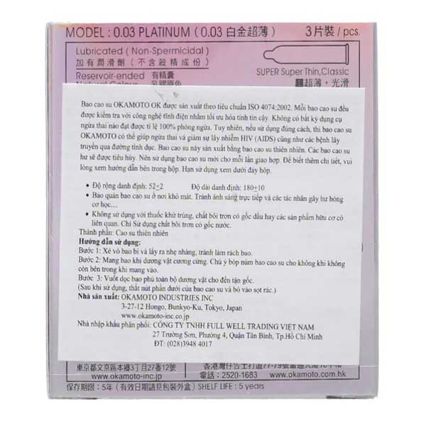 Tên sản phẩm: Bao cao su Okamoto Platinum 003